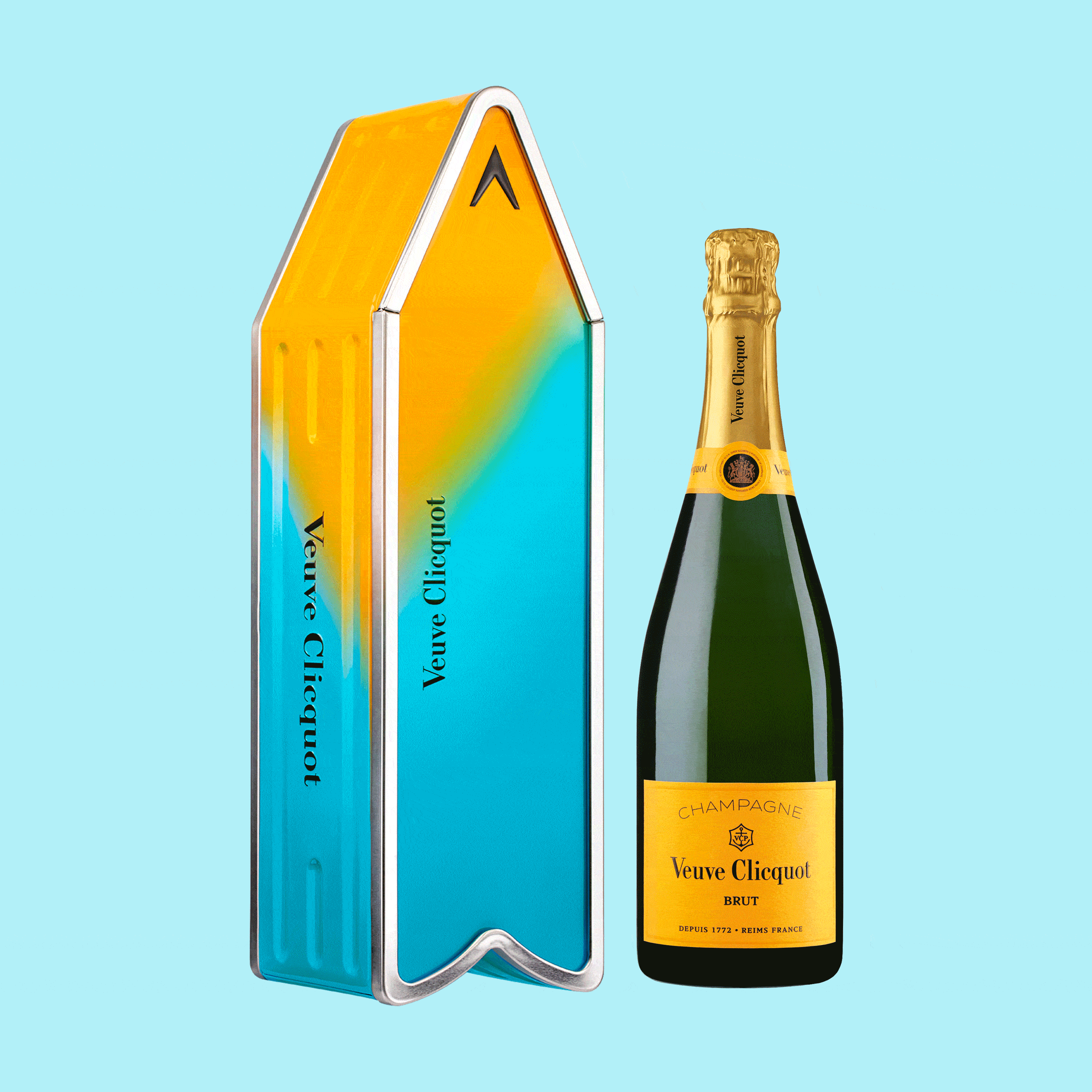 Veuve Clicquot Yellow Label Brut NV 75 cl. Personliggør Blue Arrow Tin kasse