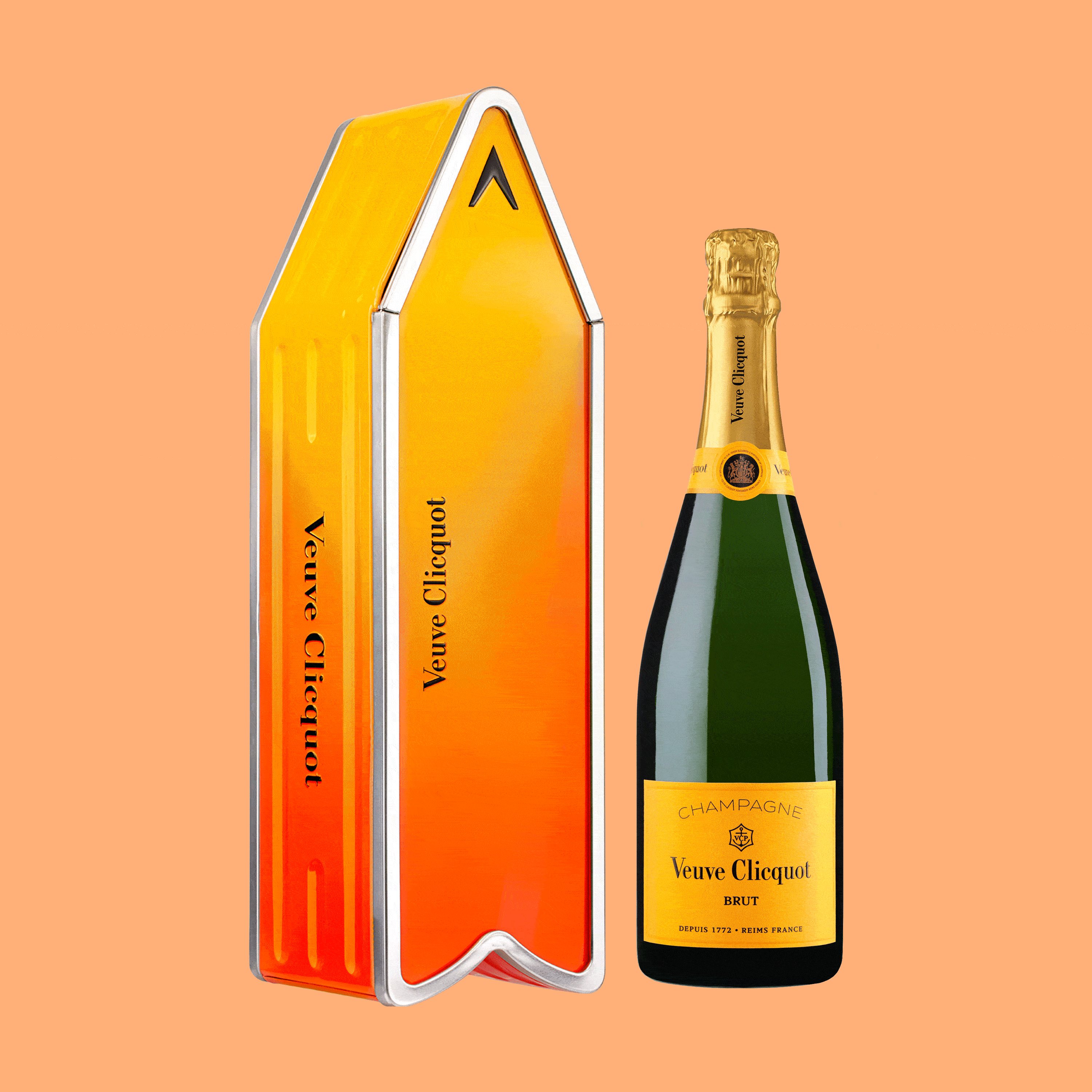 Veuve Clicquot Arrow er en flot tin kasse lavet af genbrugs tin og sukkerrørs affald, som du kan få personliggjort med din favorit placering og afstanden fra Reims - Veuve Clicquot's hjemby.