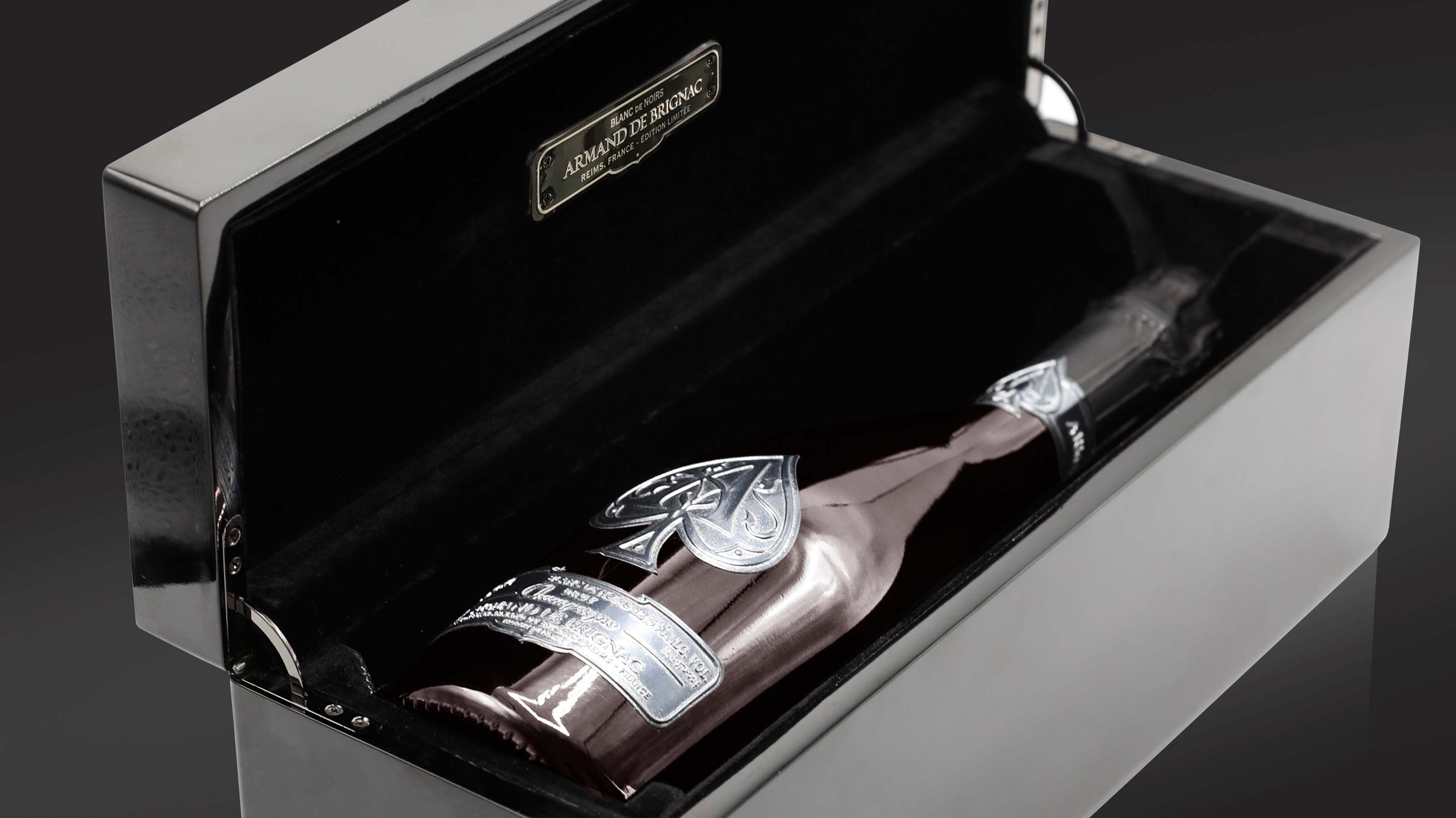 Armand de Brignac blev grundlagt i 1763 og går tilbage til før den franske revolution. Øjeblikkeligt genkendelig for sine metalovertrukne flasker og indgraverede franske etiketter, er den blevet den foretrukne Champagne for eliten.