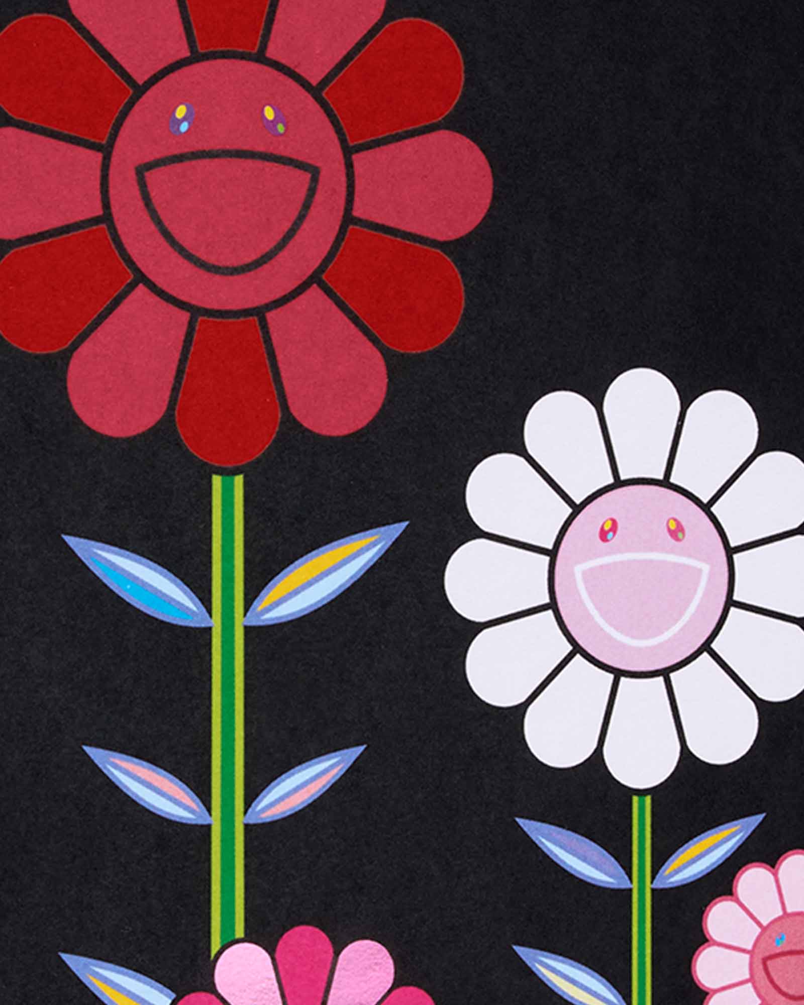 På flasken erstattes det klassiske Dom Pérignon-vinmarksskjold af et fantasifuldt blomsterlandskab. Gaveæsken prydes af Murakamis karakteristiske, glade blomster, der i samspil danner et samlet kunstværk – perfekt til samlere og designelskere.