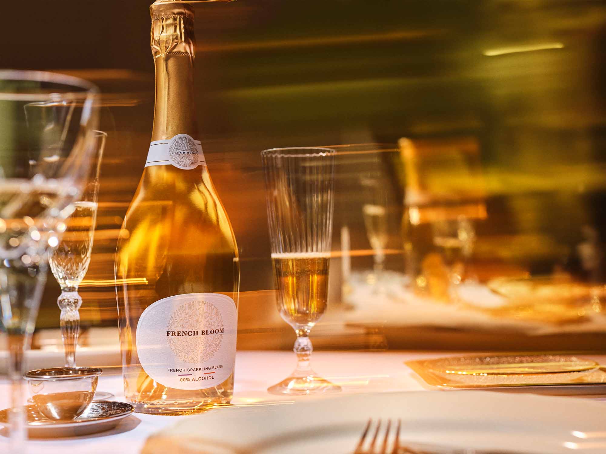 Denne højtid kan du opleve signaturen Le Blanc fra French Bloom 0,0 – en alkoholfri mousserende vin og et rent udtryk for Chardonnay-elegance.