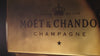 Vi personliggør Moët & Chandon ved hjælp af en specielbygget Moët maskine, som påfører teksten med en guld lak tusch