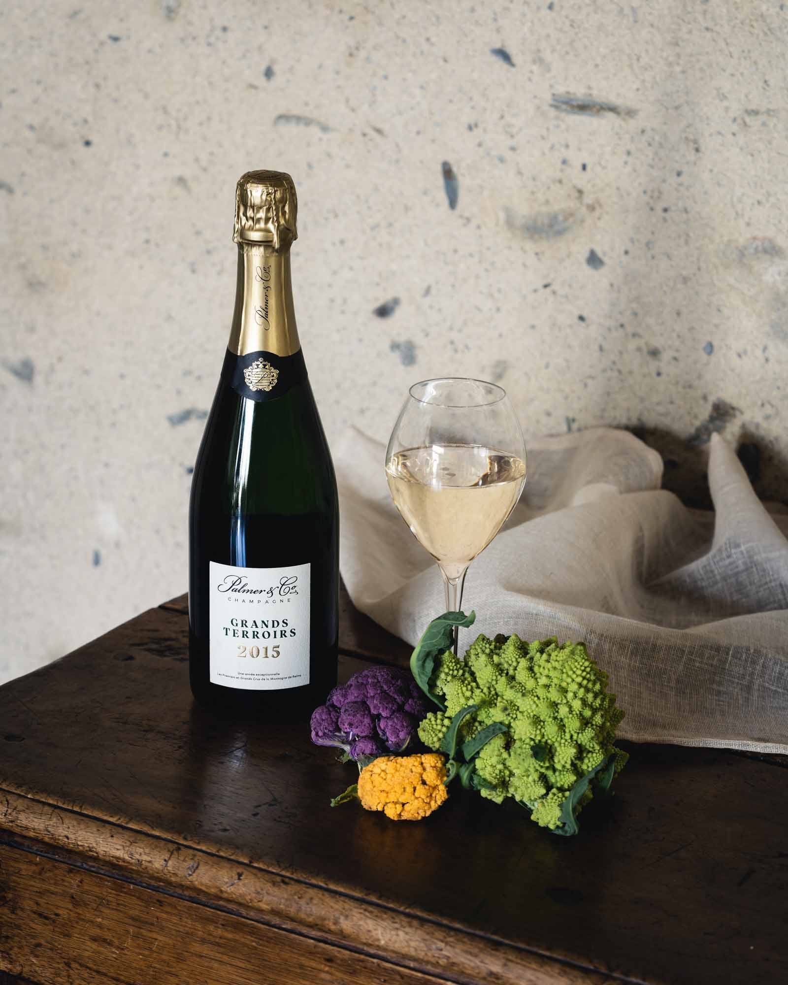 Grand Terroirs er et sjældent udtryk af Champagne, som kun få producenter ville være i stand til at lave. Den indkapsler i uset grad det unikke terroir Montagne de Reims i det nordlige Champagne, hvor man finder mange af Champagnes bedste marker, især når det kommer til Pinot Noir, som området er særligt kendt for. Her dyrkes imidlertid også en del Chardonnay, og den får her et lidt andet udtryk, end den gør i Cote des Blancs. Markerne i Montagne de Reims vender hovedsagligt mod nord for at bevare kølighed og friskhed, så Chardonnay herfra er typisk rankere, mere stålsat og sprødere end fra Cote des Blancs-distriktet, hvor markerne hovedsagligt er østvendte. I forhold til andre huse er Palmer i sjælden grad i besiddelse af en lang række af Montagne de Reims’ bedste marker med Chardonnay. Det er vigtigt når det kommer til forståelsen af denne vin. Tillige har Palmer også en smule af de bedste marker i Montagne de Reims med Pinot Meunier. Med bedste marker menes for alle druesorterne, at alle marker til denne vin skal være enten Grand Cru eller Premier Cru klassificerede, også markerne med Chardonnay og Pinot Meunier. Palmer har på denne måde en enestående mulighed for fange Montage de Reims’ samlede karakter og formåen fra de bedste marker, i de bedste årgange, i én vin. Resultatet er denne.