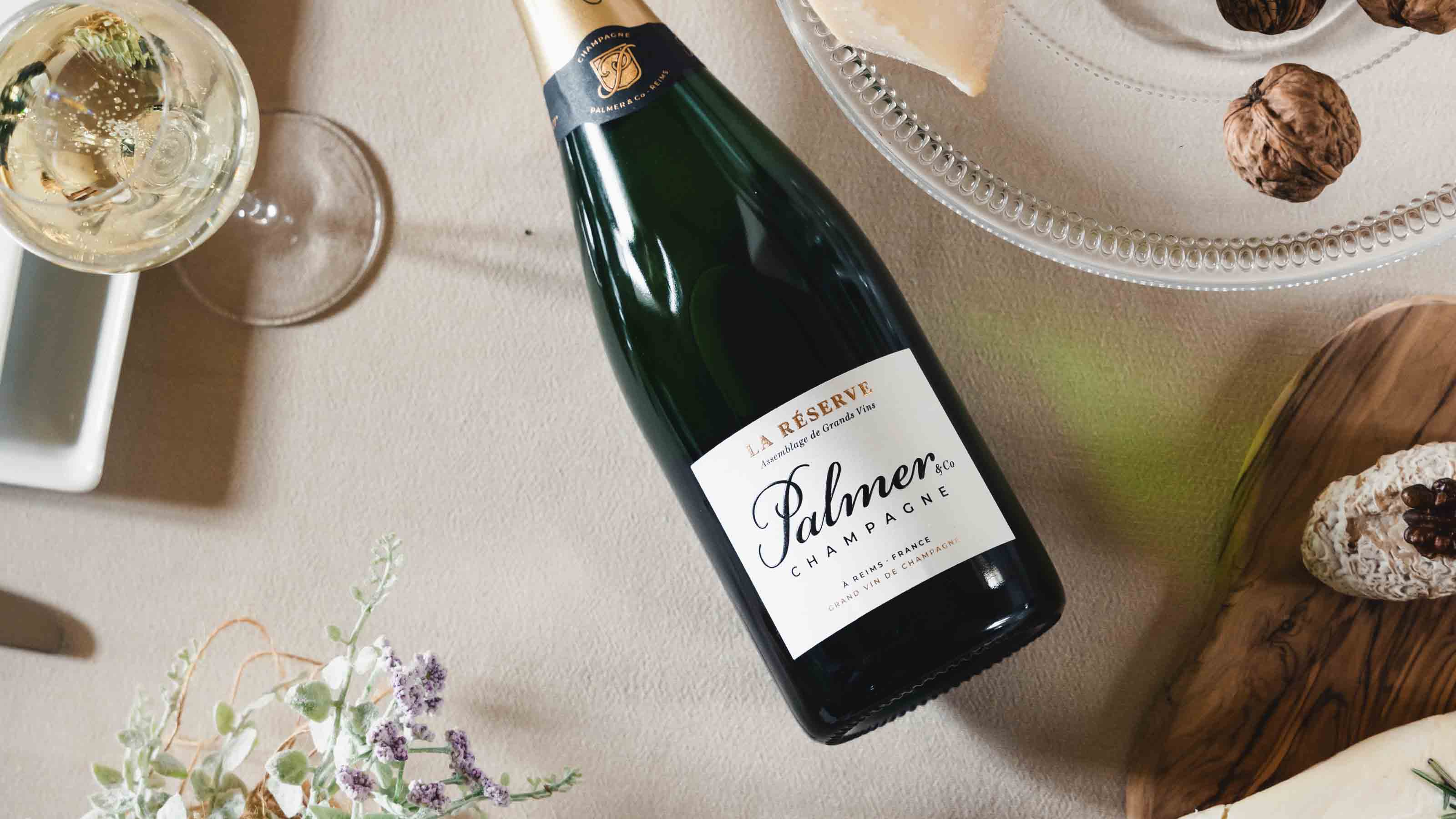 Palmer & Co supplerer med druer fra Côte de Sézanne, Côte des Bars og Vallée de la Marne, hvilket tilføjer nuancer af frugt og blomster samt en underliggende kompleksitet, der kendetegner husets stil.