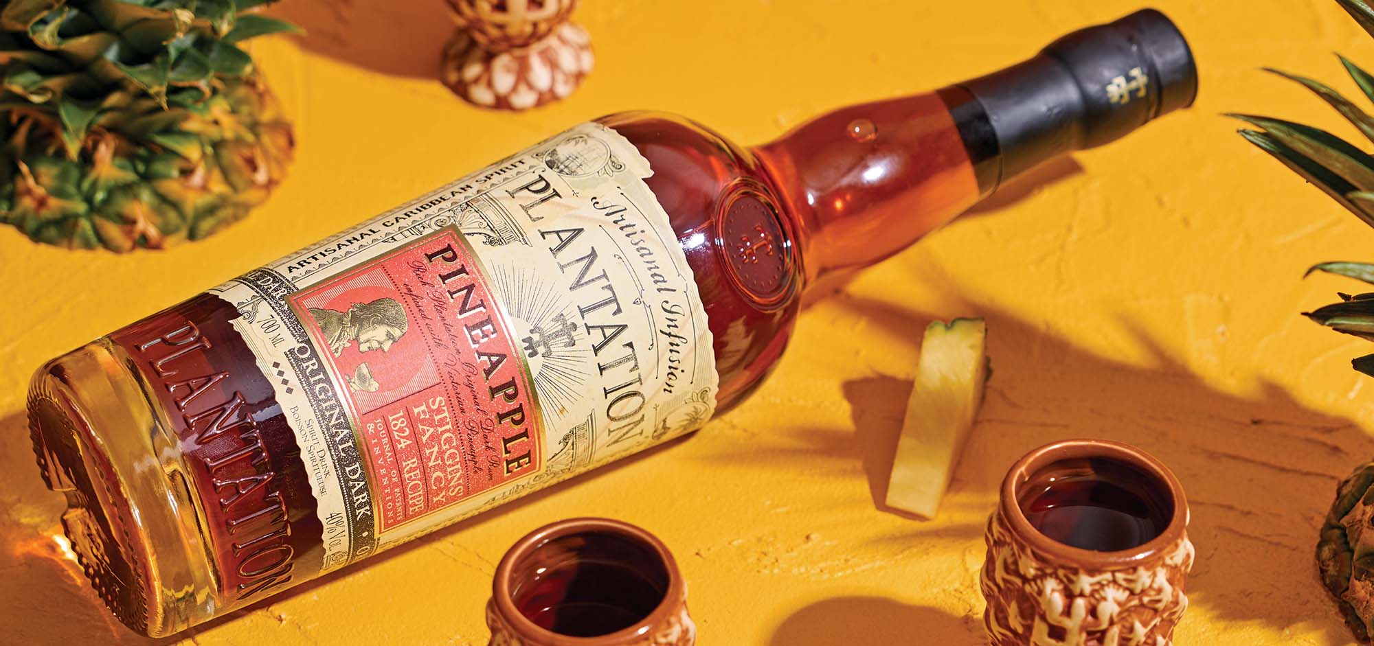 Det var en stor dag for cocktailnørder da Plantation Pineapple første gang så dagens lys. Hvad der adskiller denne ”spiced” rom fra andre i genren, er måden, den laves på. Her er ikke tilsat nogle kunstige aromaer – i stedet er den omhyggeligt produceret efter en gammel opskrift på ananasrom fra 1800-tallet. Den hvide rom, Plantation 3 Stars, infuseres med ”barken” af de små, søde Victoria ananasser og infusionen destilleres efterfølgende. Imens lægges ananaskødet i Plantation Original Dark og denne blandes med den destillerede infusion. Derved får man både en utrolig (og frem for alt naturlig) ananasaroma og en skøn men afstemt sødme. Dine daiquiris vil aldrig være de samme!