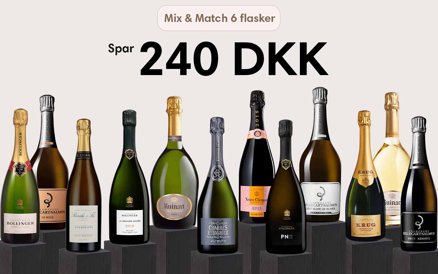 Mix & Match er vores fleksible måde hvorpå du nemt kan nå 6 flasker. Du kan frit vælge mellem alle flasker og derved opnå rabatten.