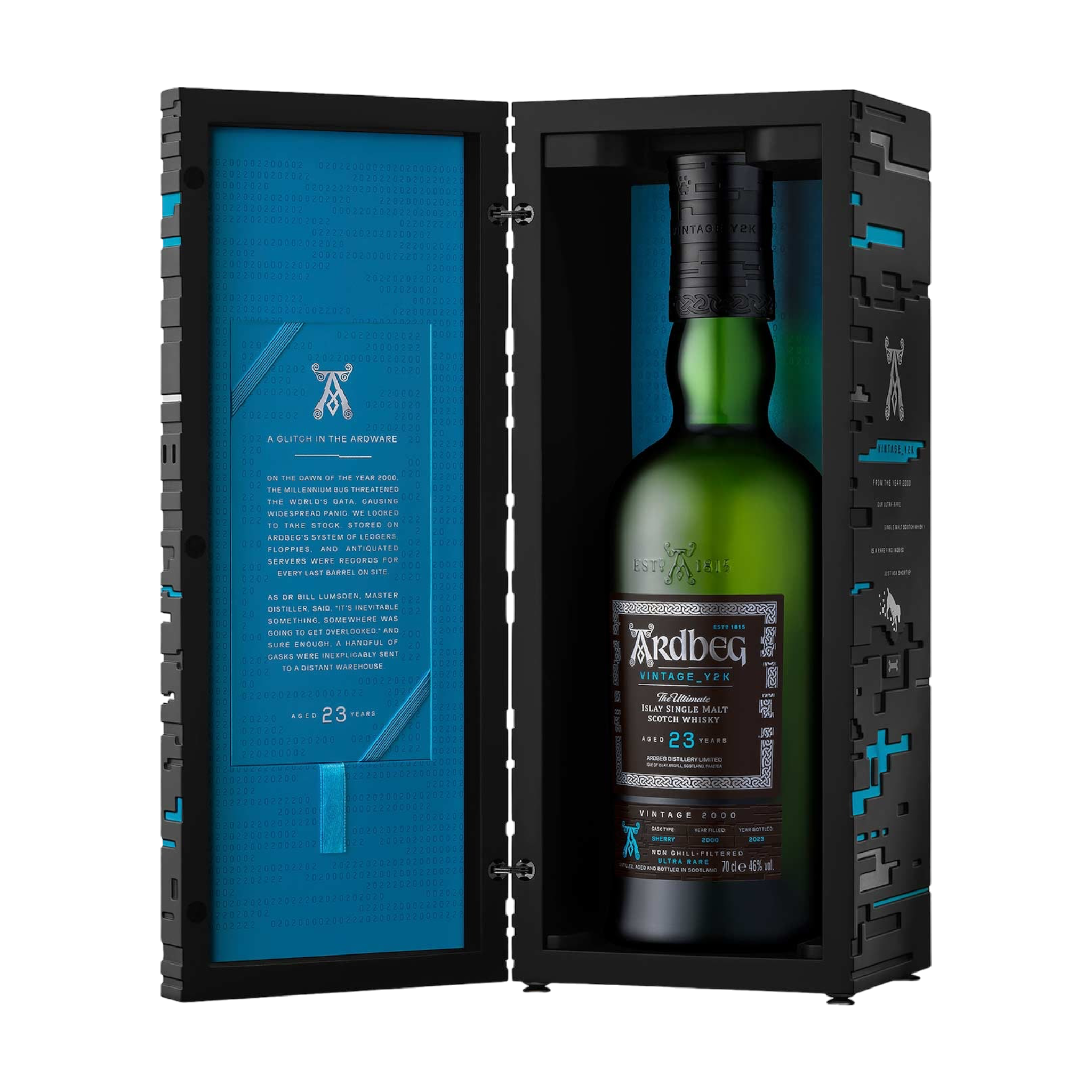 Den første i rækken af limited release fra år 2000, Ardbeg Vintage Y2K er en unik 23 år gammel whisky, der er modnet på oloroso sherry og bourbon fade. Destilleret i et år, hvor Ardbeg udforskede innovative whiskyteknikker, med brug af gamle stills, er det en vidunderlig kombination af gammelt og nyt.